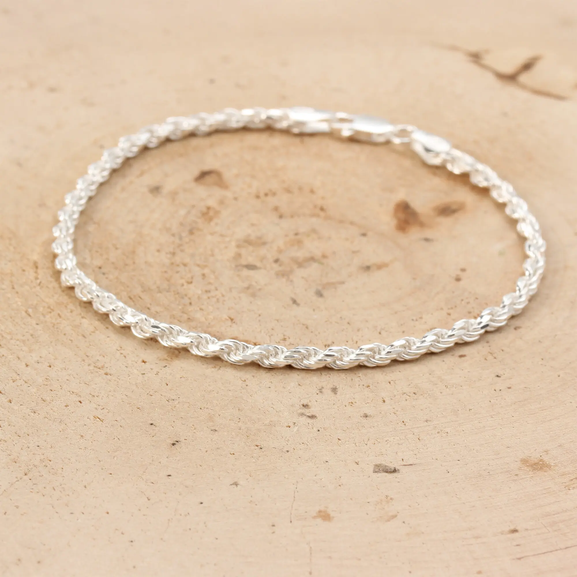 Diamond cut 925 solid sterling silver diamond cut bracelet. Unisex bracelet measuring 2.9mm diameter