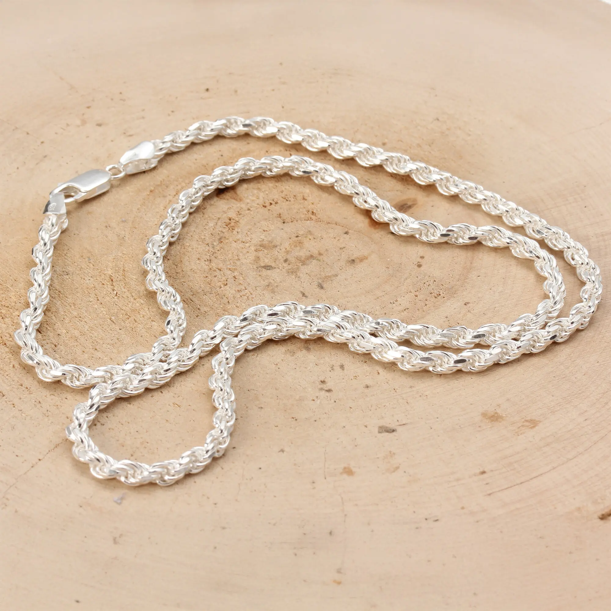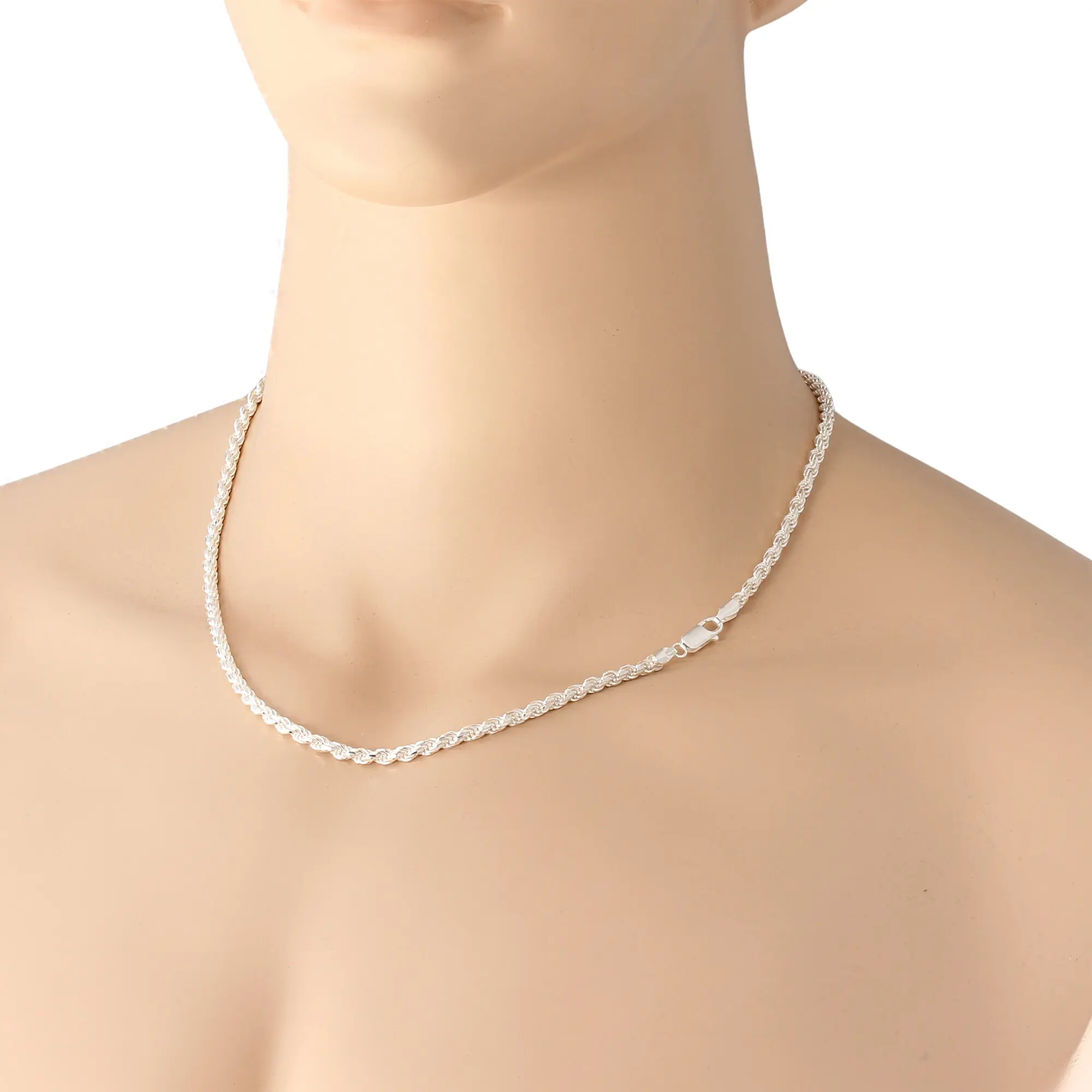 Sparkling sterling silver diamond cut rope chain necklace. Lightweight ladies sparkling 1.80mm diameter necklace. Wear on its own or with a pendant, this versatile necklace is available from 16 inch (41cm) lengths through to 30 inch (76cm) lengths