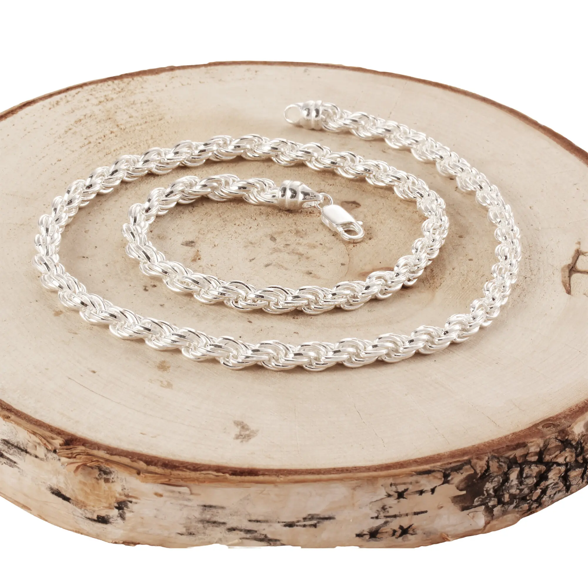 6mm diameter solid sterling silver rope chain suitable for men and women. These highly polished heavy solid sterling silver rope chains are available in a range of legnths from 18 inches up to 30 inches.