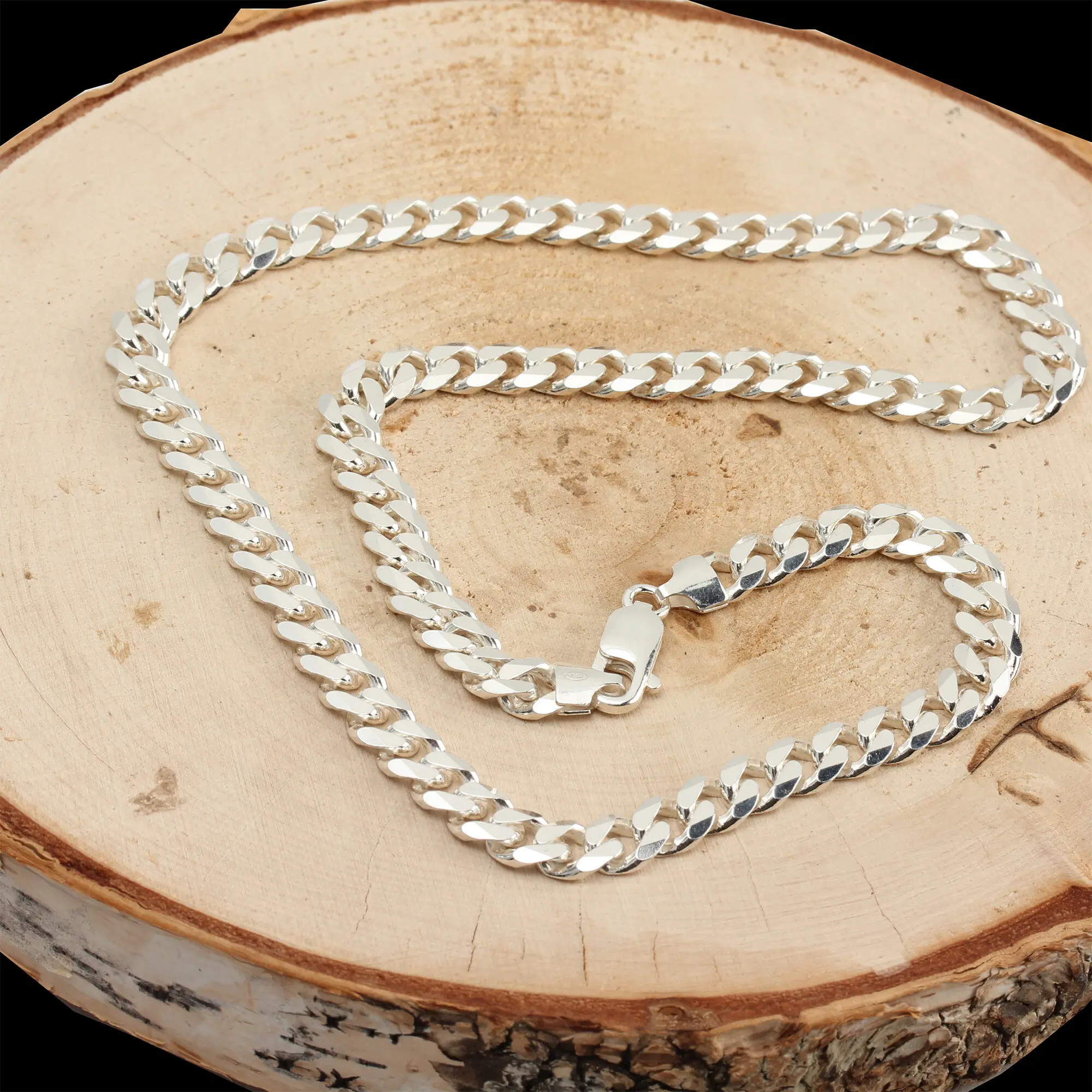 Premium quality diamond cut solid sterling silver curb chain with a good depth of 1.9mm and a width of 5.5mm.