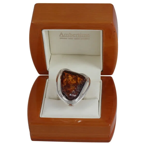 Stunning ring set with 24 pieces of Baltic Amber carefully selected to create this stunning colour graduation affect. The amber set section measures 26mm x 19mm, average weight is 10 grams (depending on selected ring size).