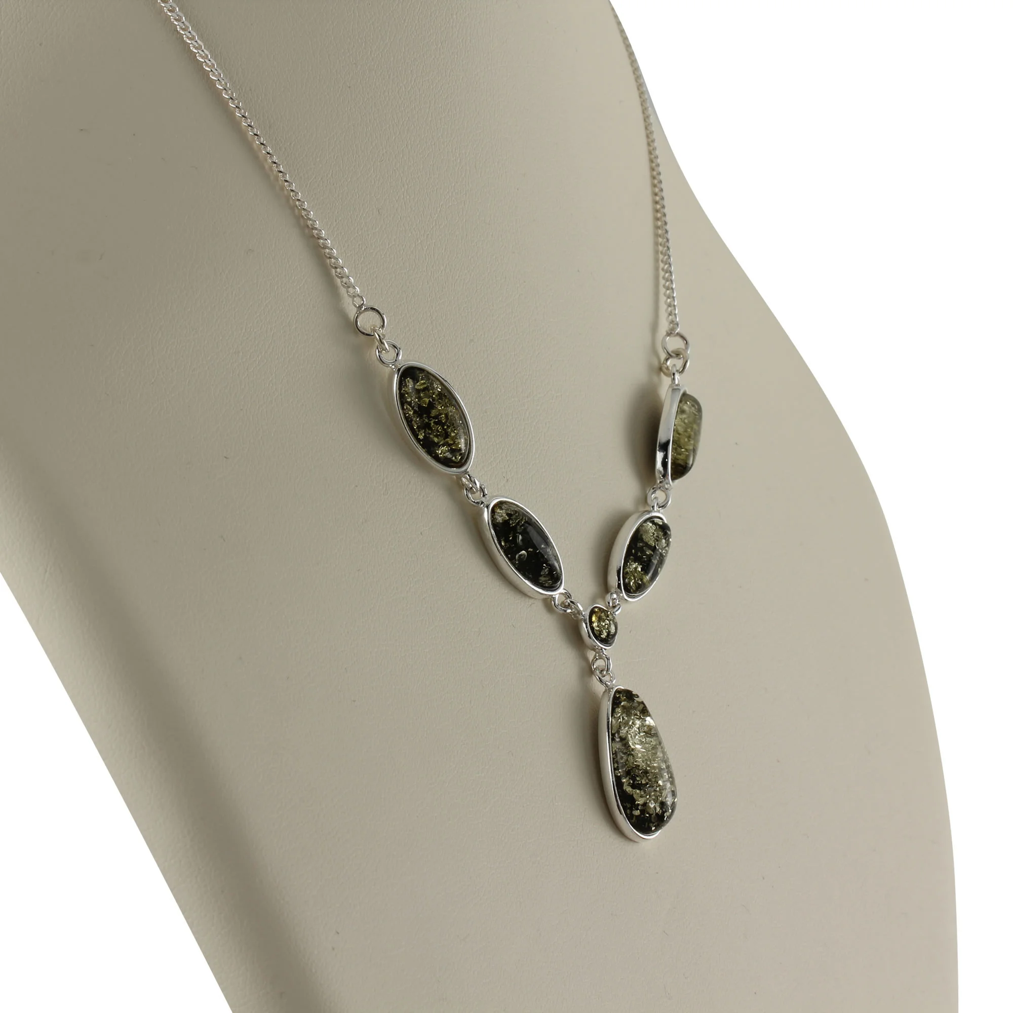 Solid sterling silver bracelet set with honey and green amber, each piece of amber has been cut into the classic trillion cabouchon cut and measures 9mm x 9mm. This exquisite bracelet is 7.25 inches in length and weighs 10.58 grams.