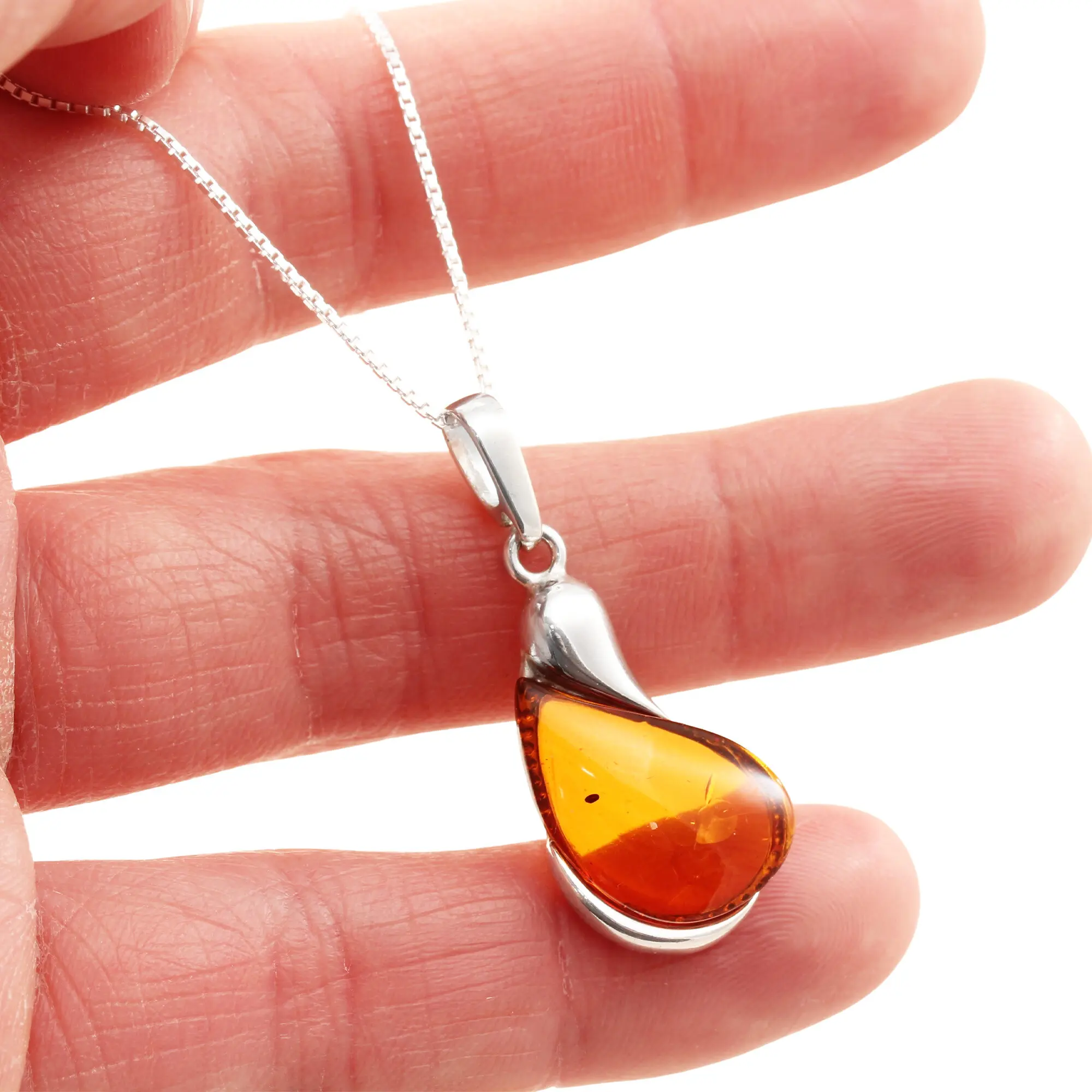 Solid sterling silver Celtic pendant. Honey Baltic amber stone measuring 17.7mm x 8.5mm complimented by a solid sterling silver Celtic design which totals a drop of 33mm.