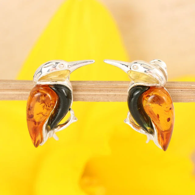 Sterling Silver Baltic Amber Kingfisher Earrings