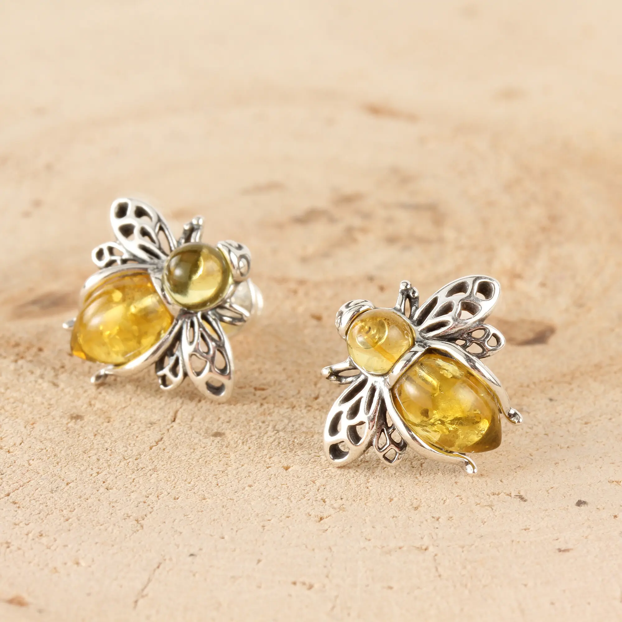 Finely detailed sterling silver honey bee pendant. This cute little bee pendant has a lightly oxidised finish to the wings. The honey Baltic amber is perfectly shaped to a realistic body. Supplied with a sterling silver box pendant chain