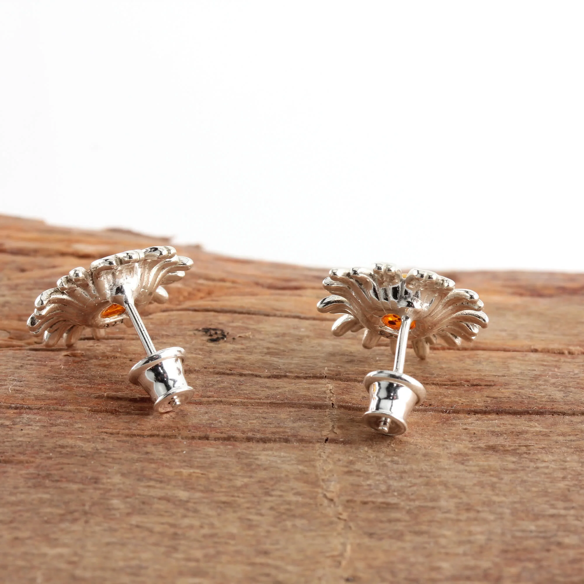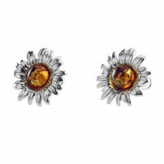 Dainty sunflower earrings set with Baltic amber on a shepherds hook fastening. A new addition to our best selling sunflower amber range. These smaller sunflower earrings dangle and dance on the ear and are perfect for the summer