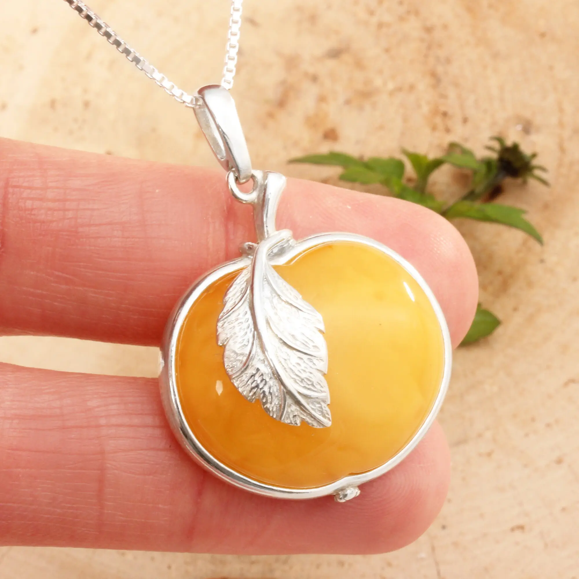 Beautiful butterscotch yellow Baltic amber apple pendant